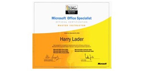 Certification as a Master Instructor in Excel, PowerPoint, Access, Word, Outlook